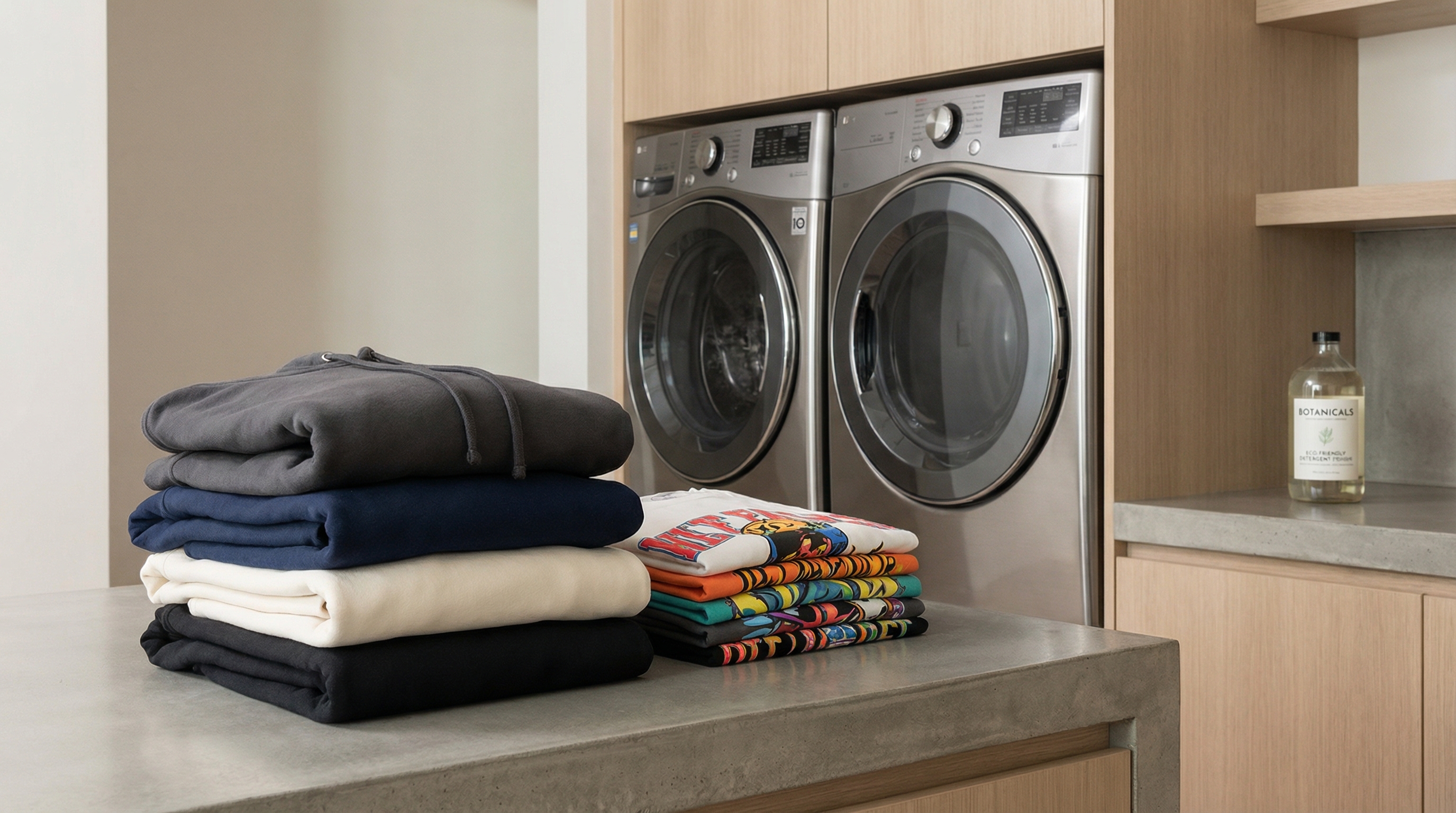 - The Sort: Separate your laundry by weight and color. Never wash heavy denim or towels with your premium custom tees. The friction from heavier fabrics can lead to pilling on your softer cotton shirts.